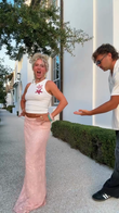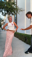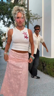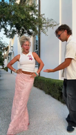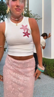 White Short Vest and Pink Sequin Skirt Set