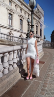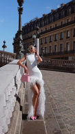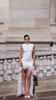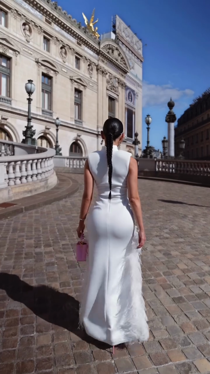 White Sleeveless Turtleneck Feather Train Mini Dress