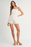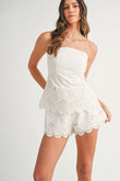 White Strapless Top and Shorts Set with Eyelet Detailing
