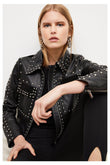 Women Black style Silver Spiked Studded Leather Biker Jacket