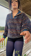 This pullover features a V-neck design and soft fleece fabric for warmth and comfort. The subtle pattern and earthy color palette add a stylish and unique touch, making it the perfect casual piece.