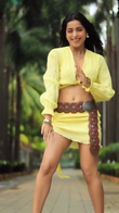 Yellow Crop Top and Skirt Set