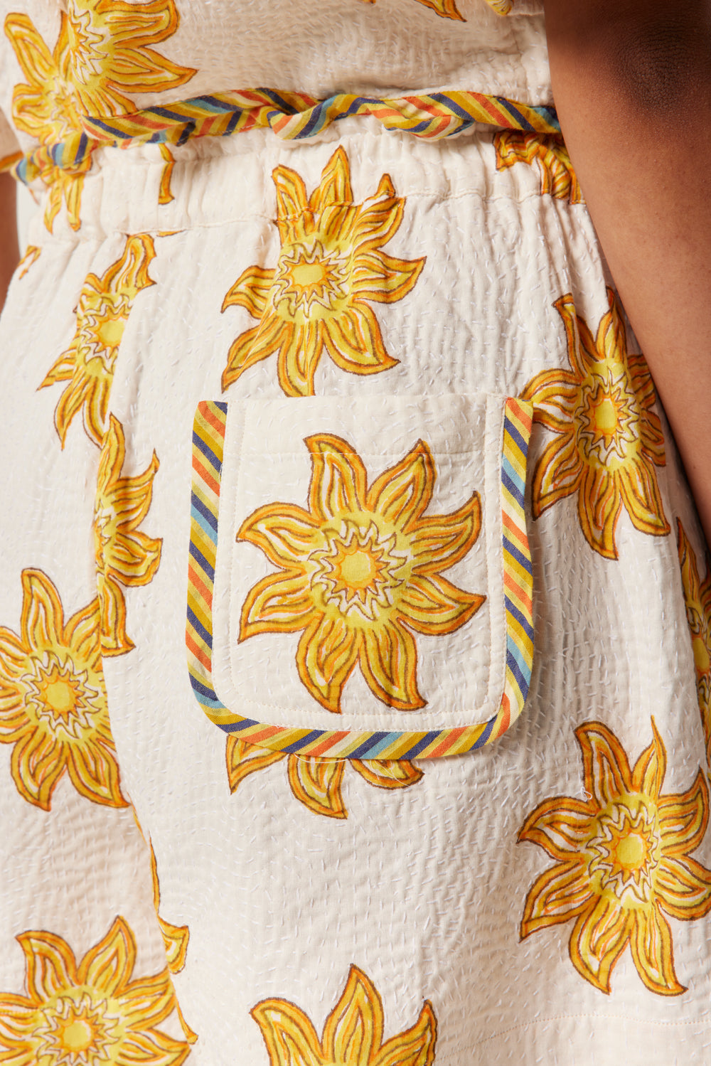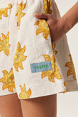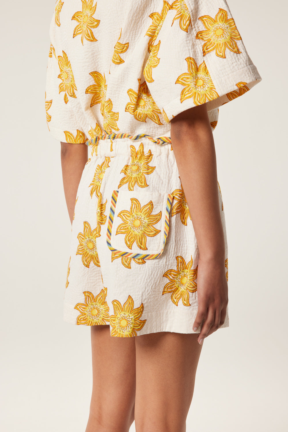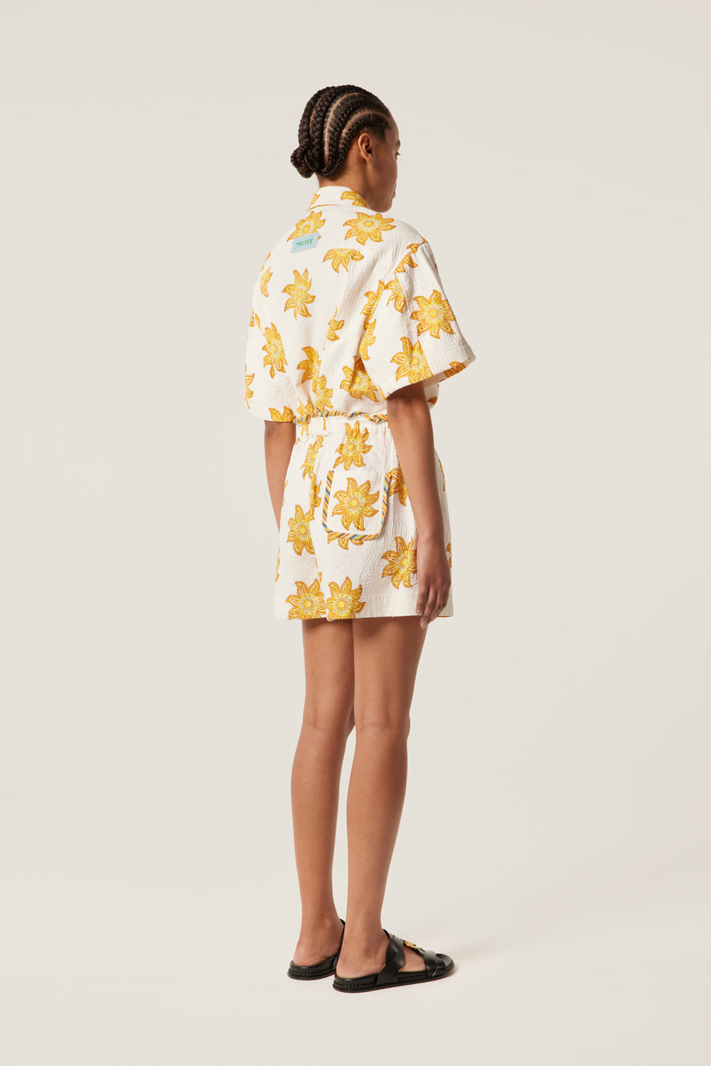 Yellow Floral Print Short - Sleeve Shirt & Shorts Set