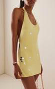 Yellow Halter Neck Mini Dress with Floral Embellishments
