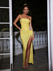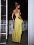 Elevate your evening wardrobe with this Yellow Strapless Floral Accent High - Slit Maxi Dress . The sleek strapless design, high slit, and delicate floral detail create an elegant, alluring look. Perfect for formal events, galas, or special nights out. Pair with statement jewelry and high - heels to complete the sophisticated ensemble.