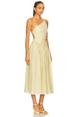 Yellow Striped One - Shoulder Midi Dress