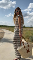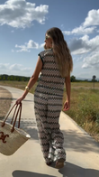 Zigzag - Patterned Knit Top & Wide - Leg Pants Set